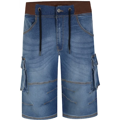 Bigdude Jersey Waistband Denim Shorts Light Wash